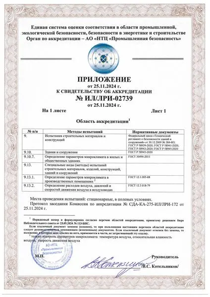 | Акт эффективности работы вентиляционных систем | от 3000 ₽ |